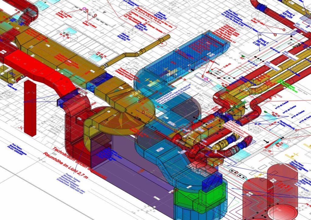 SIA-108, Phasen 31/33 | Gebäu­de­tech­nik­pla­nung HLKKS | Koor­di­na­tion aller Gewerke | Kana­li­sa­ti­ons­pla­nung | Werk­lei­tungs­pla­nung
